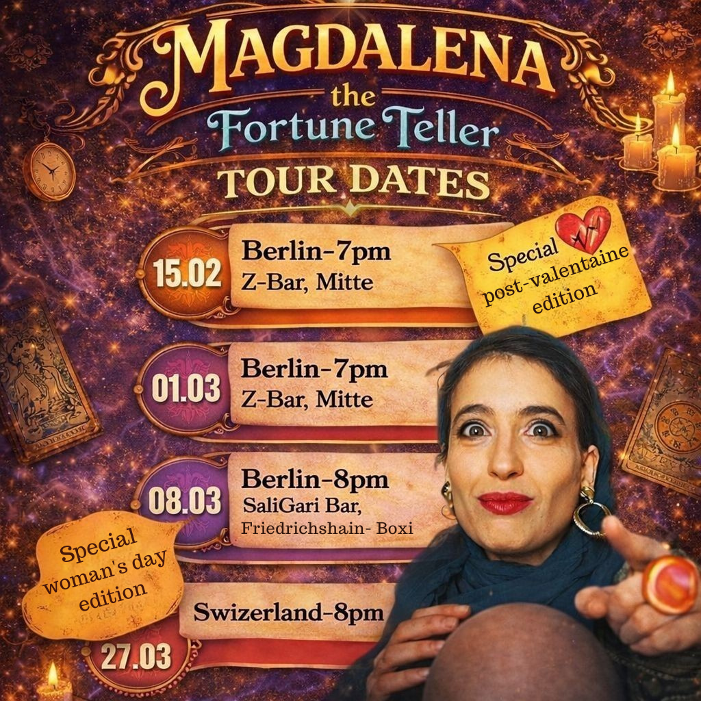 I knew you will come View fullsize Shows Sundays-Berlin Z-Bar Shows Sundays Berlin SaliGari Bar Follow me and luck will follow you Instagram Facebook TikTok Tickets Book Book Book Past Shows